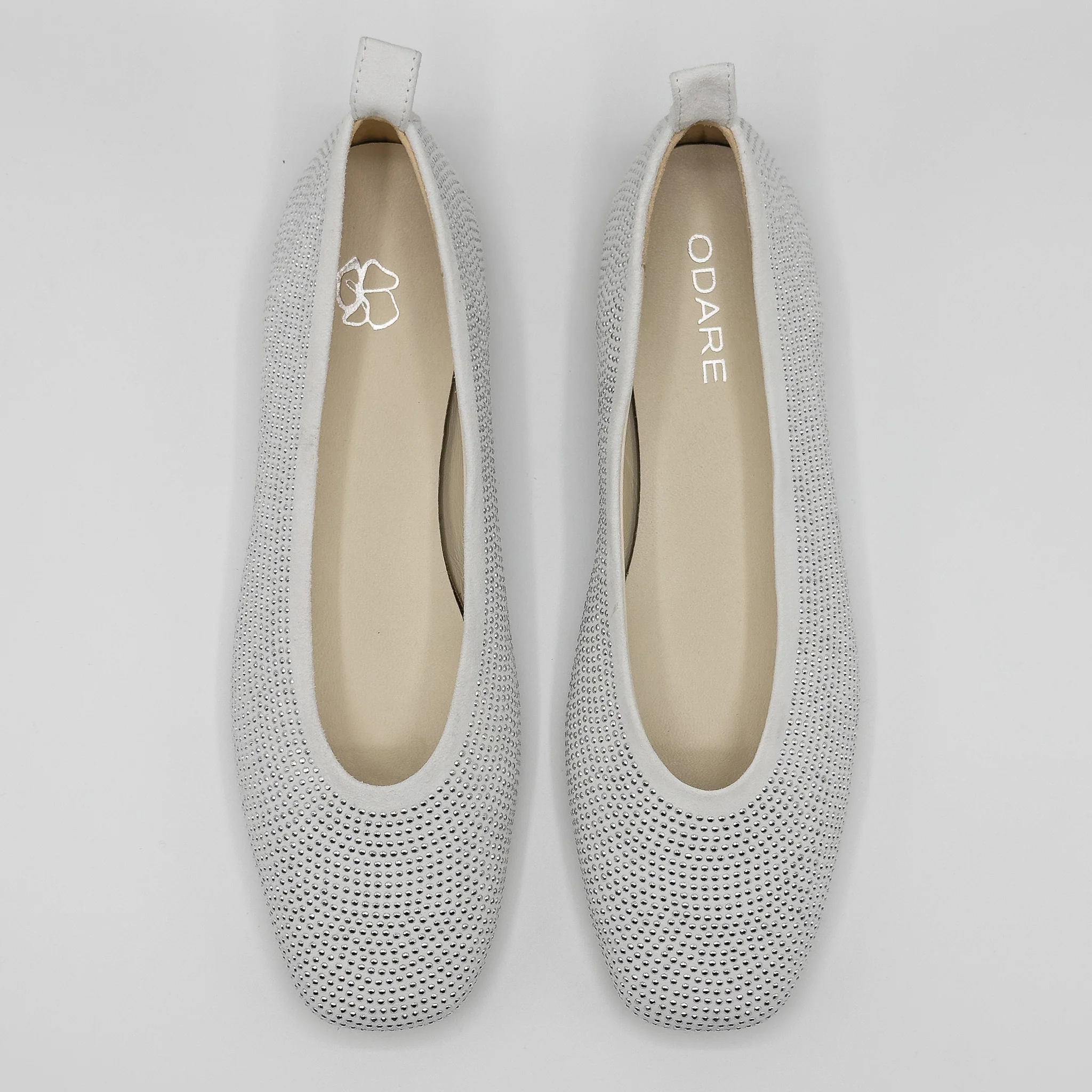 Ballerines en daim beige avec strass.