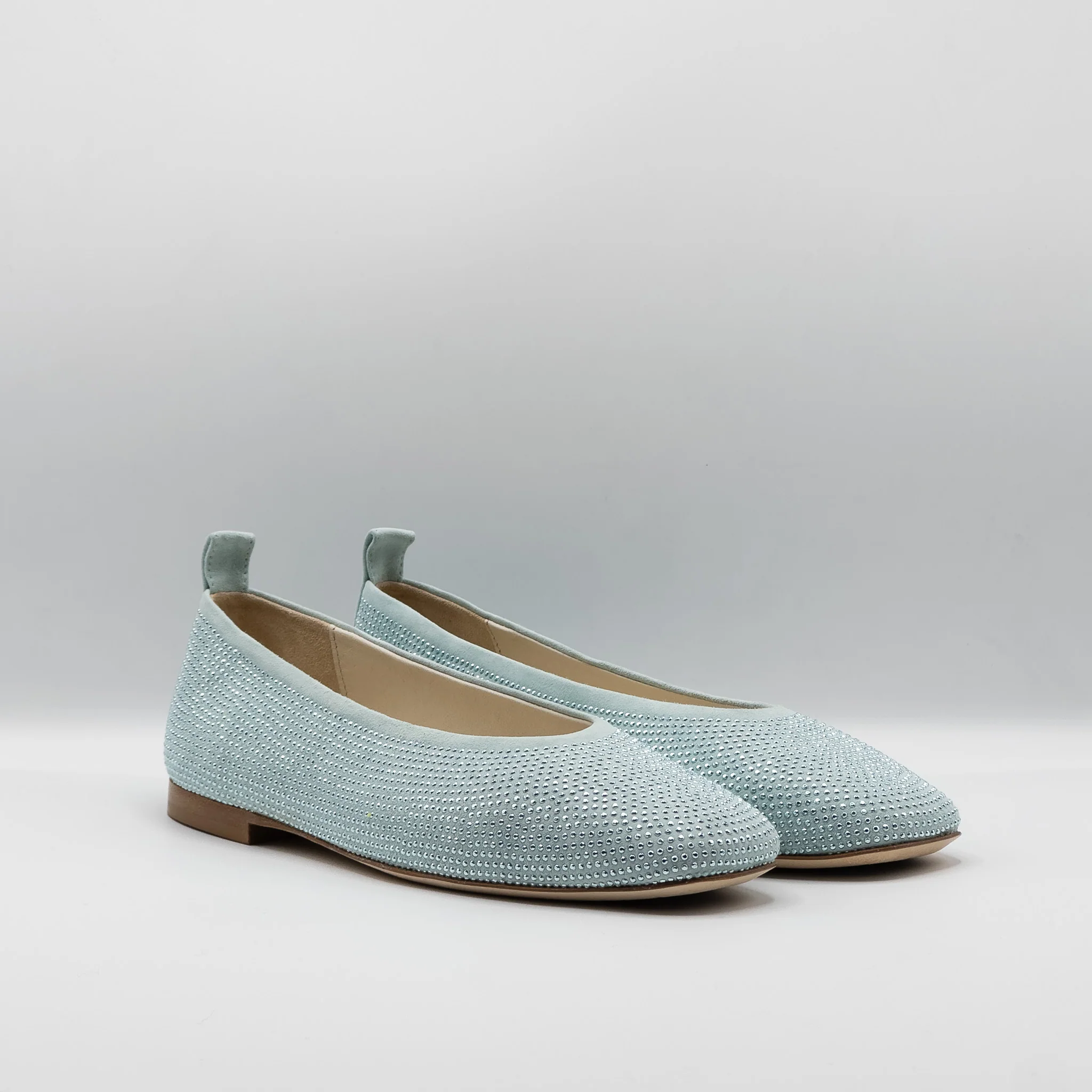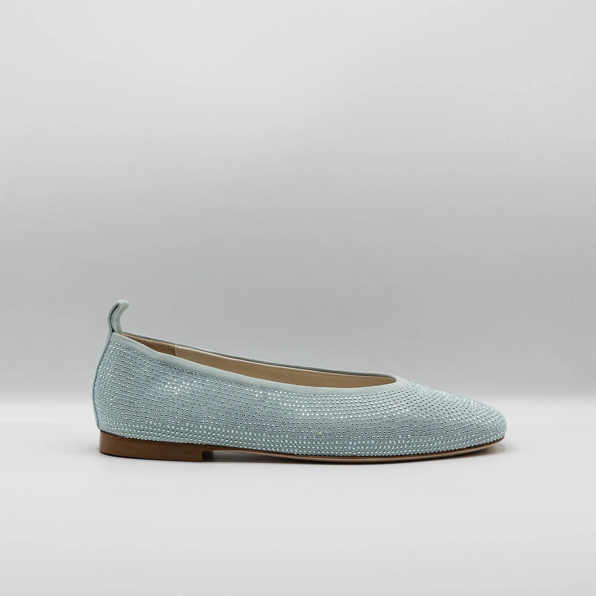 Ballerines en daim beige avec strass. Ce modèle garanti un très grand confort grâce à sa souplesse et sa coupe bien emboîtante. Made in ITALY