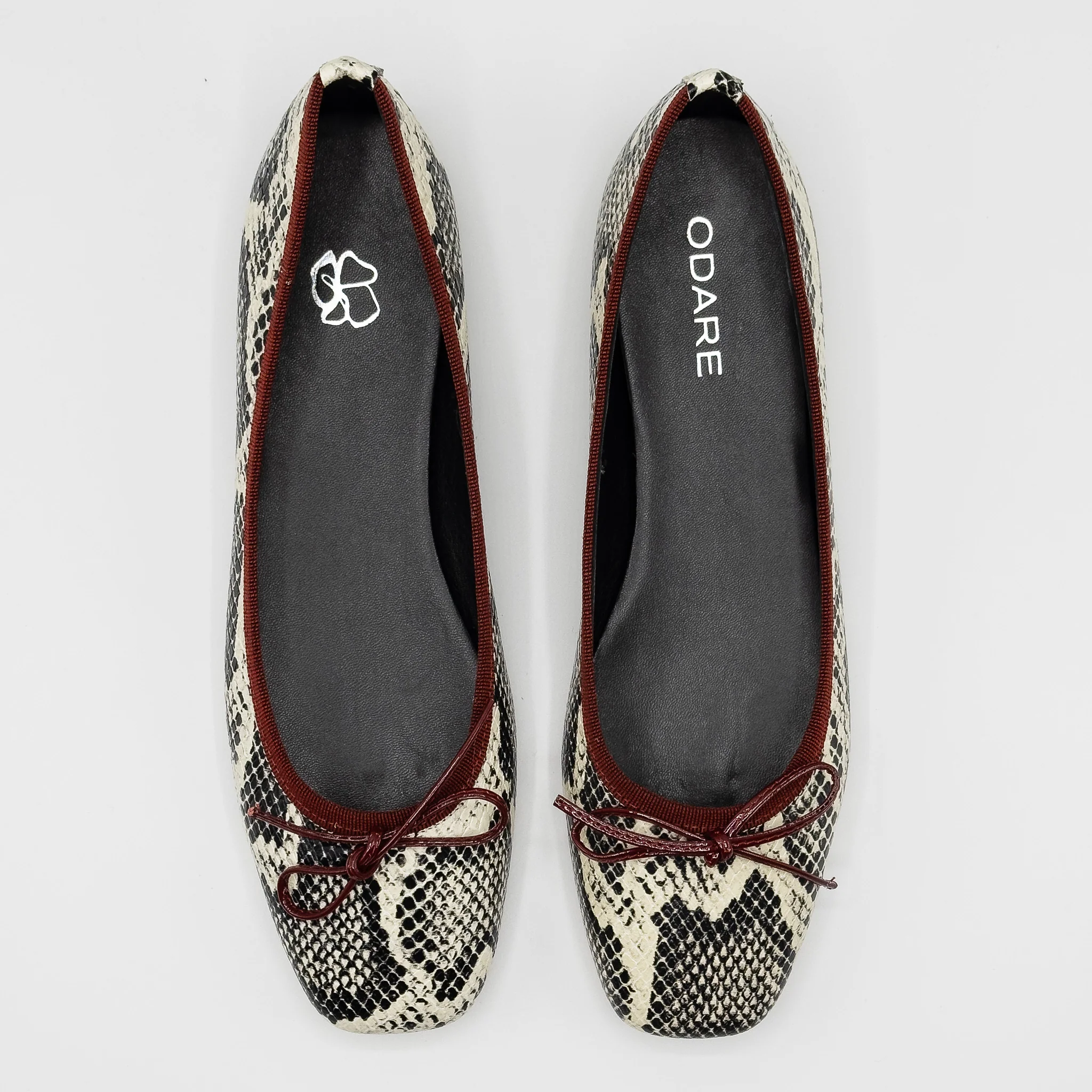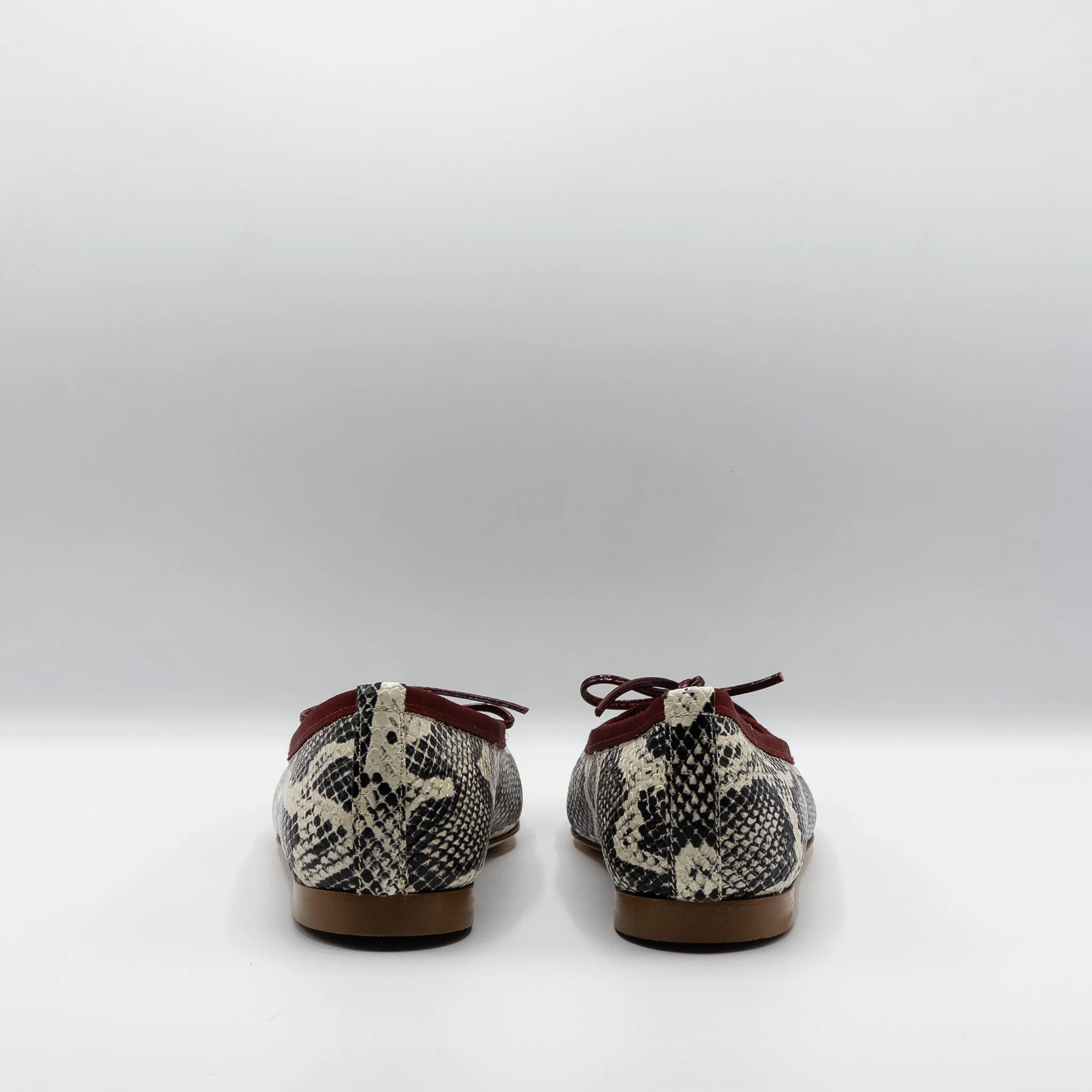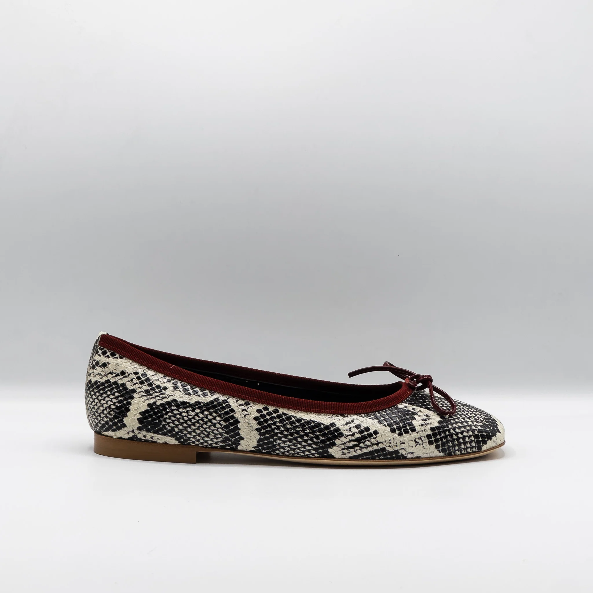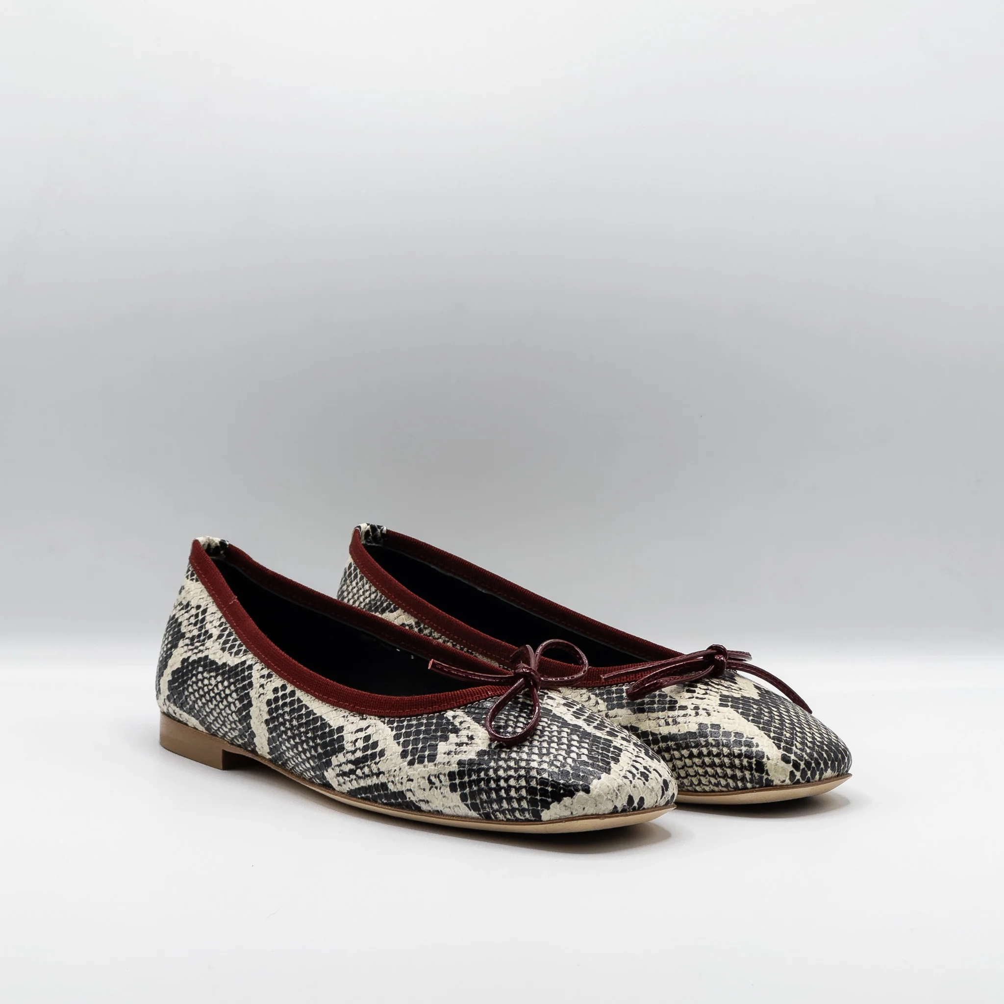 Ballerines en cuir effet python. Détail noeud bordeau. Made in ITALY.