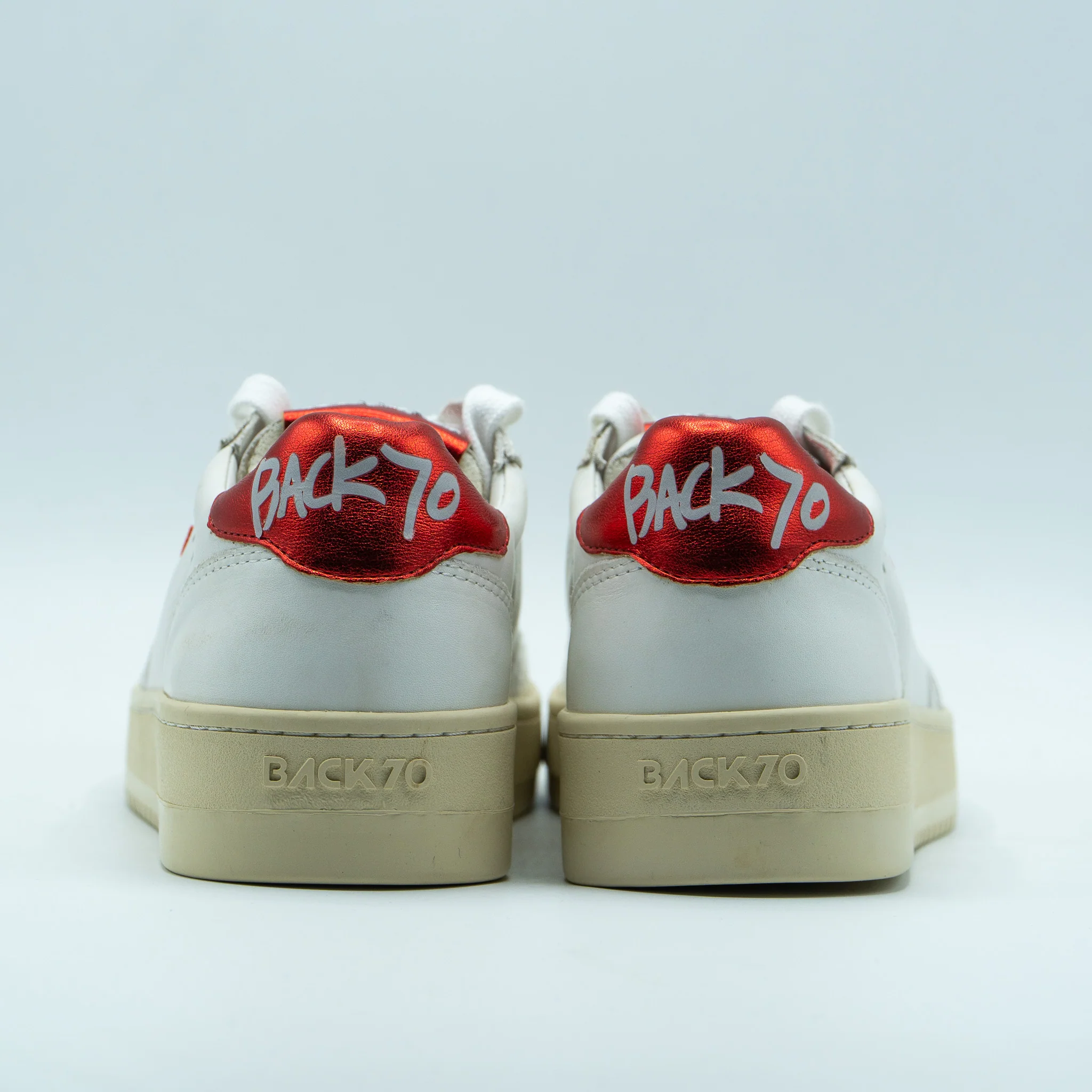 Basket en cuir blanche empiècement cuir rouge à l’arrière.