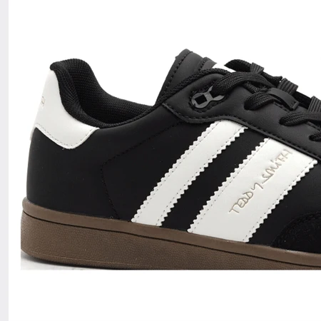 DESCRIPTION Baskets bande logo – Teddy smith. Tons: les NOIRS. Modèle: baskets. Dessus/Tige: textile, cuir PU. Logo: imprimé. Bout: rond. Talon: plat. Semelle intérieure: textile. Semelle extérieure: caoutchouc. Fermeture: lacets. Matière: Synthétique. COMPOSITION Tige : Synthétique