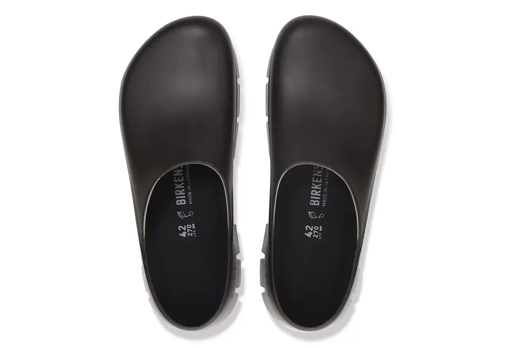 Que ce soit pour les loisirs, le jardinage ou au travail, les sabots Super Birki en polyuréthane (PU) sont un must-have. Ces sabots très appréciés, réalisés d’un seul tenant et légèrement plus profonds au niveau du talon, protègent l’ensemble des pieds et leur offrent un bon maintien. Produits en polyuréthane, un matériau très flexible dont la surface lisse est étanche et repousse la saleté, les Super Birki sont particulièrement faciles à entretenir. Le lit de pied ergonomique en liège et recouvert d’une couche en microfibre hypoallergénique et respirante participe au grand confort des sabots. Il est donc possible d’insérer ses propres semelles dans les Super Birki. Le lit de pied en liège est amovible et lavable jusqu’à 30°C. Les Super Birki (sans lit de pied) sont lavables jusqu’à 80°C. BIRKENSTOCK a conçu la semelle afin de répondre à de hautes exigences en matière de sécurité : les semelles flexibles en mousse PU possèdent des propriétés antiglisses et présentent une tenue stable même sur sols glissants (certification EN ISO 20347:2012 OB E, catégorie SRC).