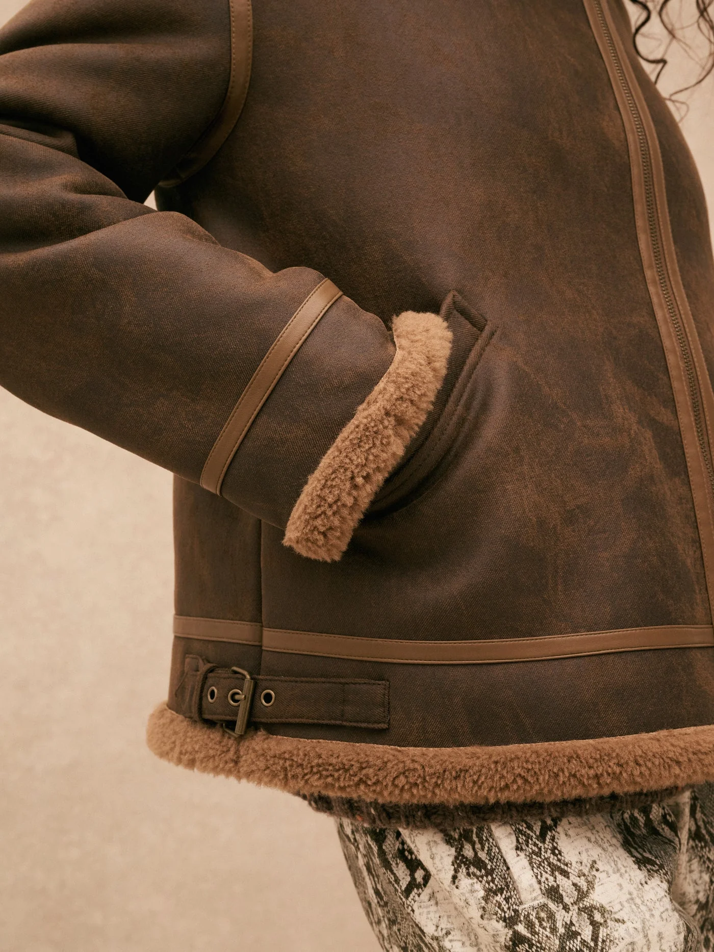 Avalon est un blouson à la coupe aviateur. En imitation peau retournée, il assure un look ultra stylé.