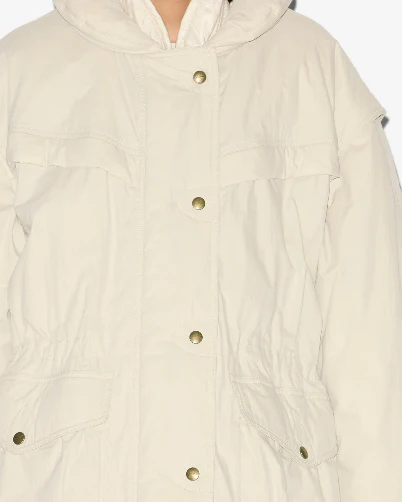 Blouson bicolore en cotonCol rond zippé avec capuche intégréeFermeture devant zippée et pressionnéeÉpaules à reversManches longuesPoignets droits à patte pressionnéeTaille resserrée avec coulissePoches à rabats pressionnésDoublure en cotonPoche intérieure zippéeCoupe décontractée Référence : MA0428FAC3G01E67KI DAMONE 100% Coton
