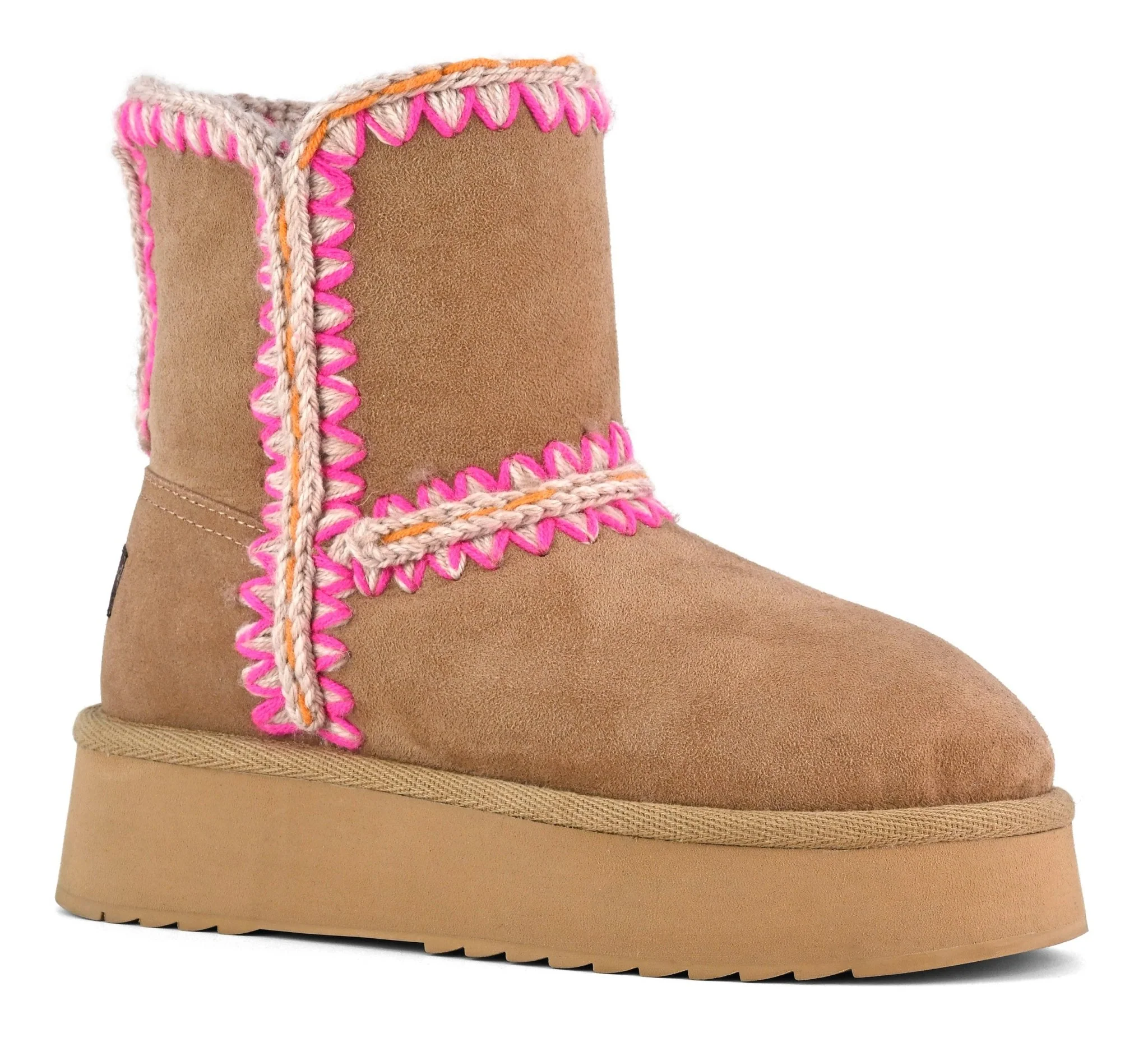 Nouveauté pour la saison FW24, la plateforme Mou Eskimo Norfolk est disponible dans une gamme de coloris avec des coutures contrastées au crochet faites à la main, signature de Mou. Fabriqué à la main de manière experte en véritable peau de mouton luxueuse, ce modèle est incroyablement confortable et résistant avec une semelle en caoutchouc EVA. Hauteur 22 cm.