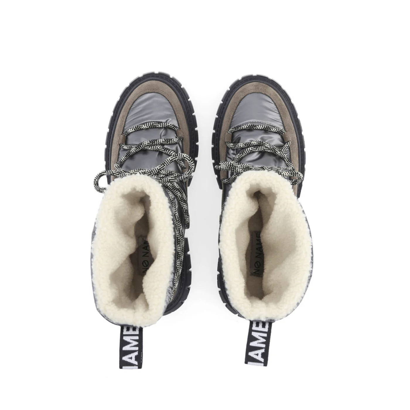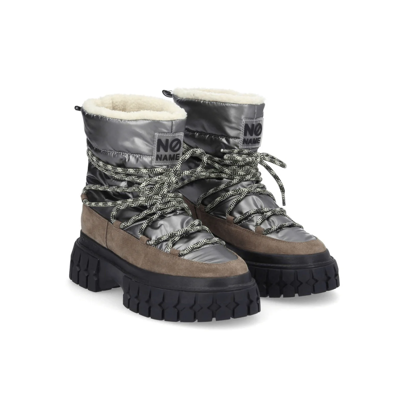 Cet hiver, la GRAVITÉE SNOWBOOTS s’inspire de l’univers outdoor pour ajouter une touche chaleureuse et réconfortante à ton vestiaire. Cette botte en toile déperlante métallisée et cuir velours taupe est doublée de polyester bouclette pour assurer la chaleur. Sa semelle plateforme de 5 cm en EVA et caoutchouc permet une meilleure adhérence tout en restant légère. Avec cette paire au style après-ski, perchée sur une semelle crantée couleur sable, NO NAME bouleverse une fois de plus les codes de la mode.