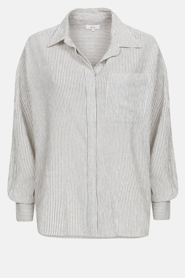 La chemise Daddy est votre chemise oversize incontournable. Sa coupe décontractée le rend idéal à superposer, mais il aura également l’air cool rentré dans votre denim préféré. Il est doté d’une fermeture boutonnée sur le devant pour une touche féminine. Celui-ci est réalisé dans un tissu crêpe de coton.