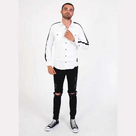 Chemise Manches Longues Bandes Manches SH01 Blanche