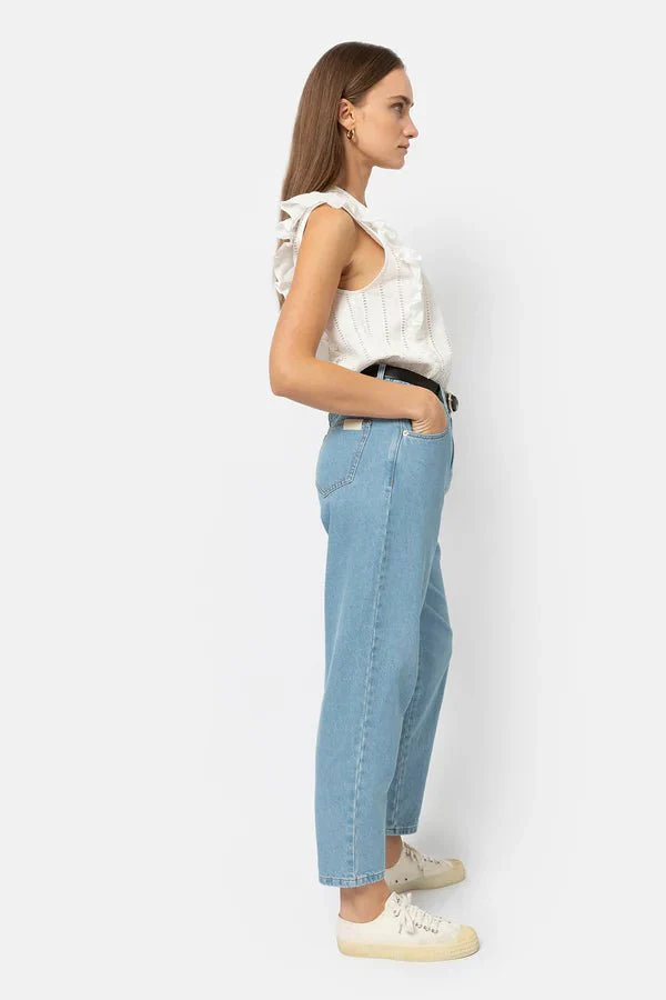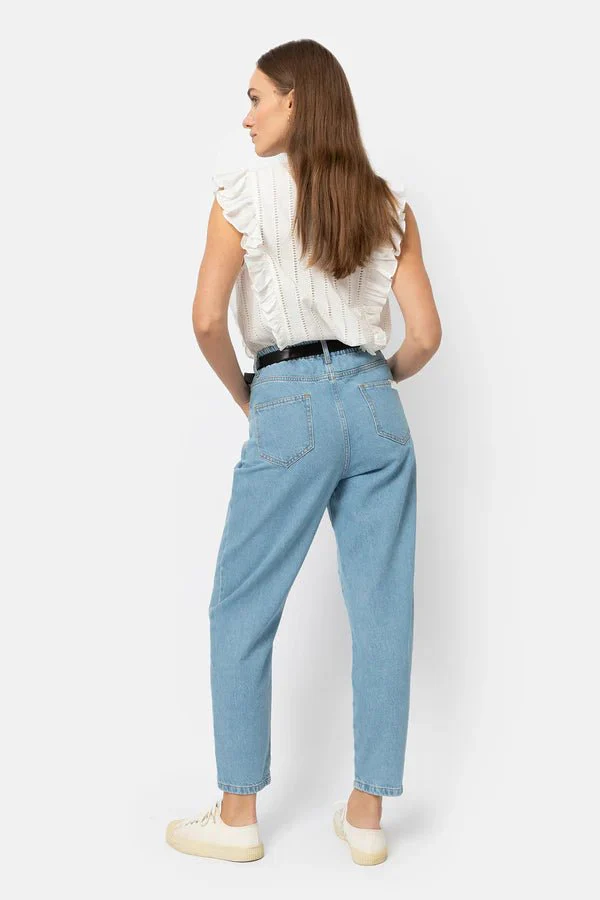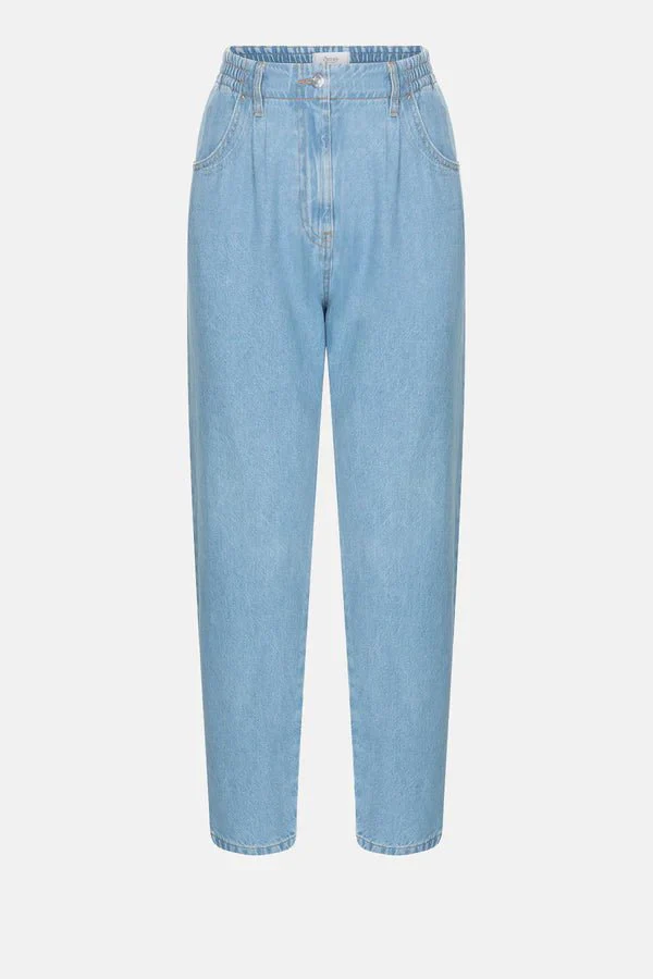 Le denim Edgar en denim bleu clair est le basique incontournable dont tout le monde a besoin. Il est coupé pour s’asseoir haut sur votre taille, maintenu par une bande élastique et une fermeture éclair.