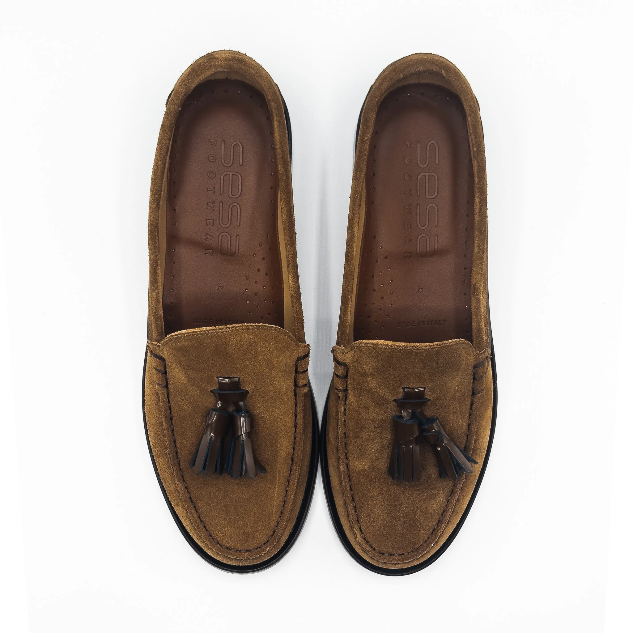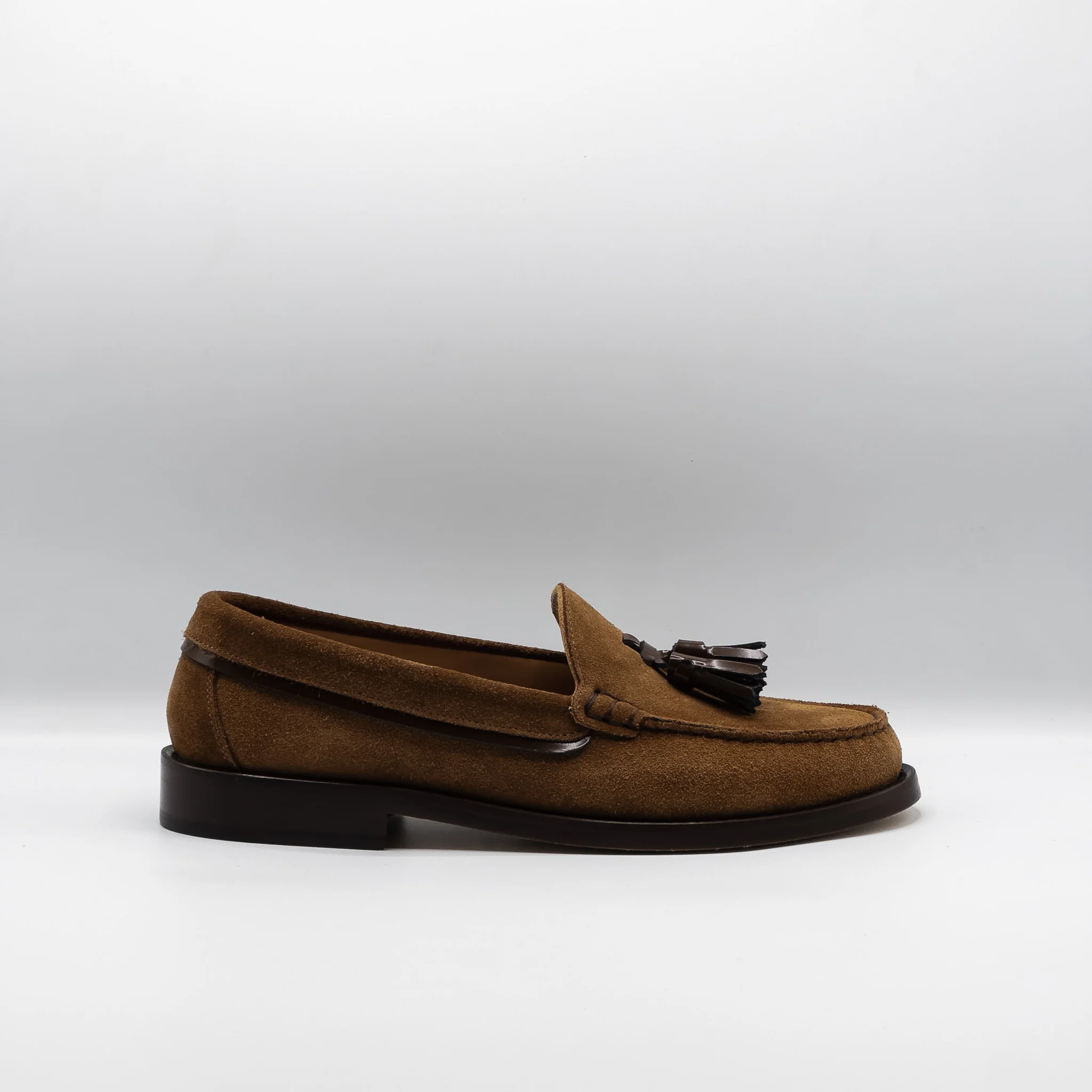 Mocassins à pampilles en cuir de veau suédé. Fabriqués en Italie.