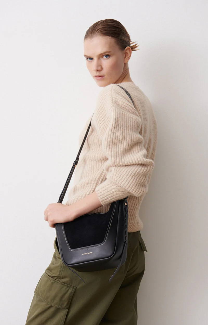 À la silhouette arrondie et épurée, ce petit modèle seau est pratique avec sa bandoulière ajustable à porter en cross body ou à l’épaule, selon vos envies. Avec son double cuir lisse associé à un cuir de veau plus souple, le sac seau Lou est le compagnon de ville idéal. Il se démarque notamment par son détail de lanières tressées sur les côtés.
