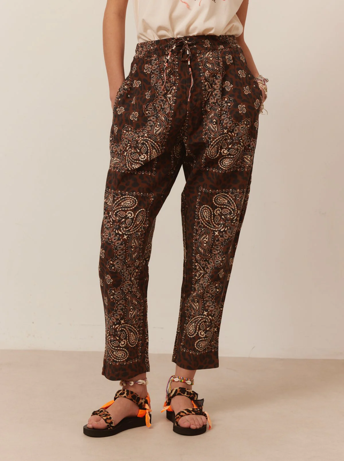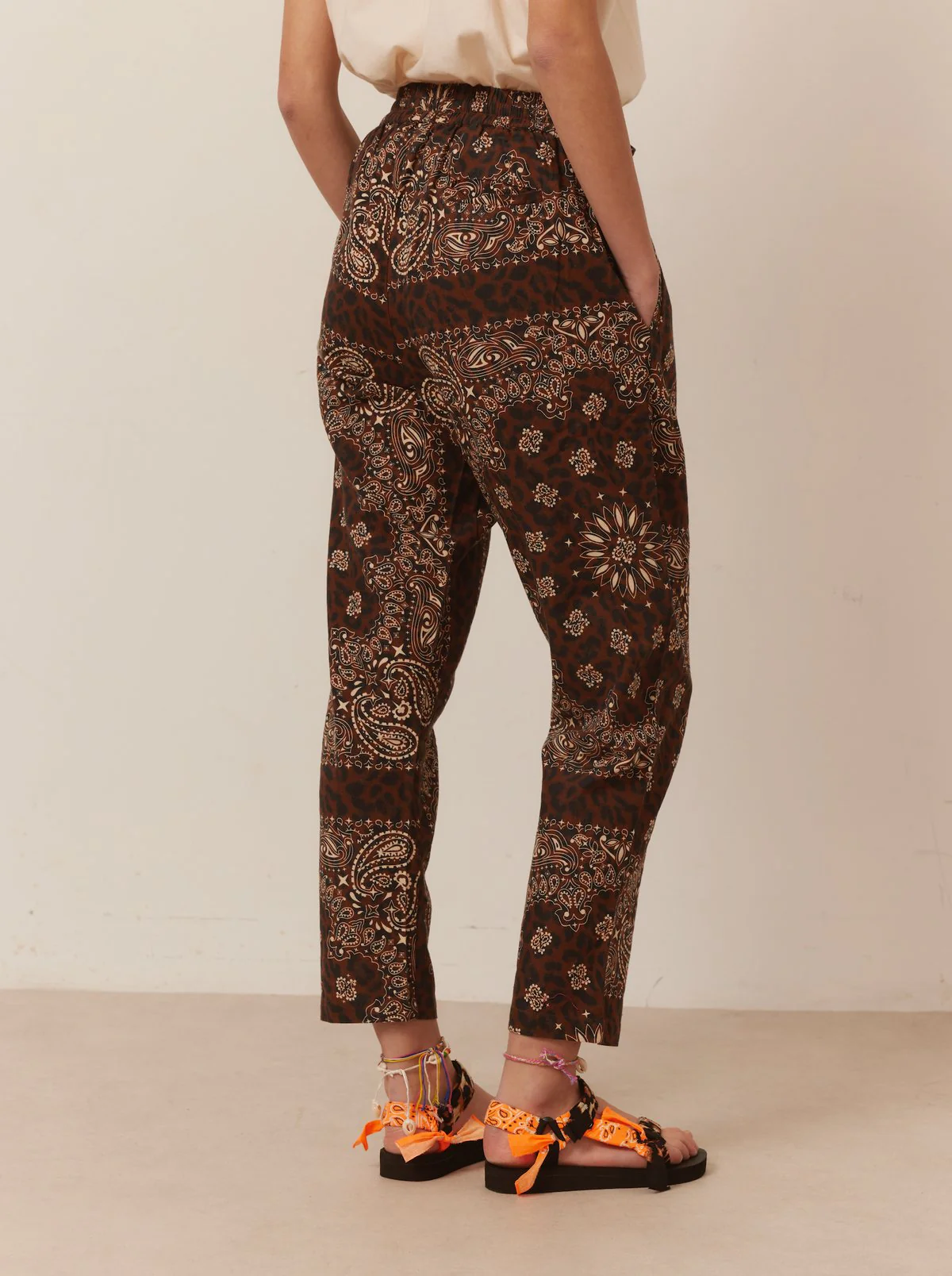 TREKKY BANDANA LÉOPARD ORANGE Détails du style : Bandana 100% coton fil : 100% polyester semelle : EVA – hauteur 1,5cm/2,5cm made in RPC Ces trekky sont faits et fabriqués à la main. Toutes les parties supérieures des modèles trekky sont fabriquées à partir de bouteilles en plastique recyclées – label REPREVE.