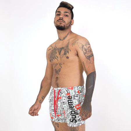 Short de bain Suprême.Des billets Dollars imprimés dessus partout.100% Polyester